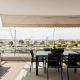 2 Huge 32 m2 balconies with views on the Aegean Sea featuring stylish outdoor furniture, a dining table and a BBQ!