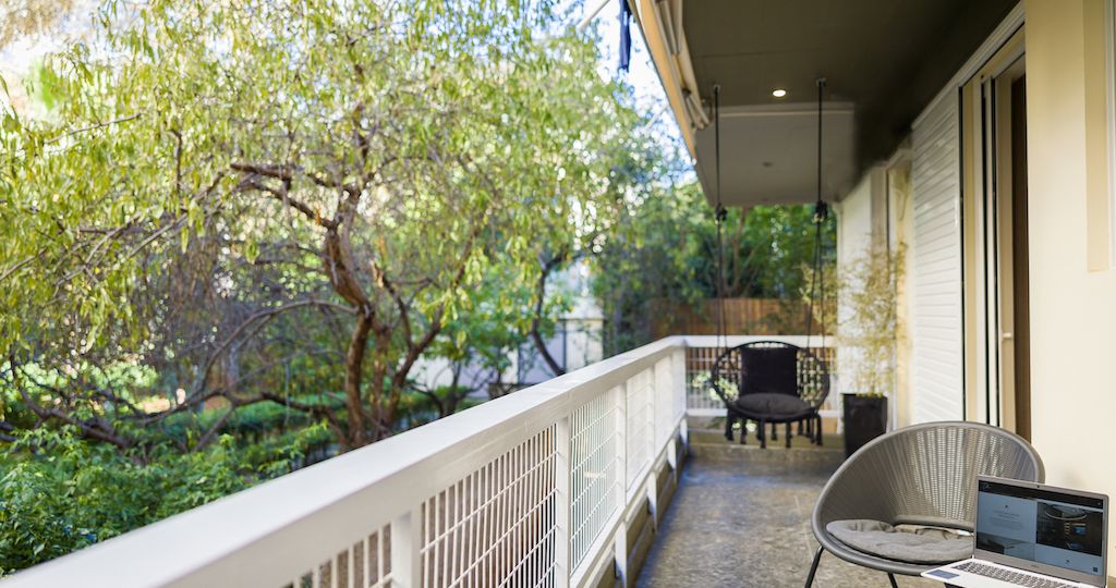 A beautifully renovated apartment, complete with stimulating architecture and luxury fittings, this modern home occupies a desirable spot on the Athens Riviera. Clean, minimal design incorporates laid-back balcony with a swing and outdoor furniture, a living room with a comfortable seating area, a state of the art fully equipped kitchen, and a bedroom with a wardrobe.