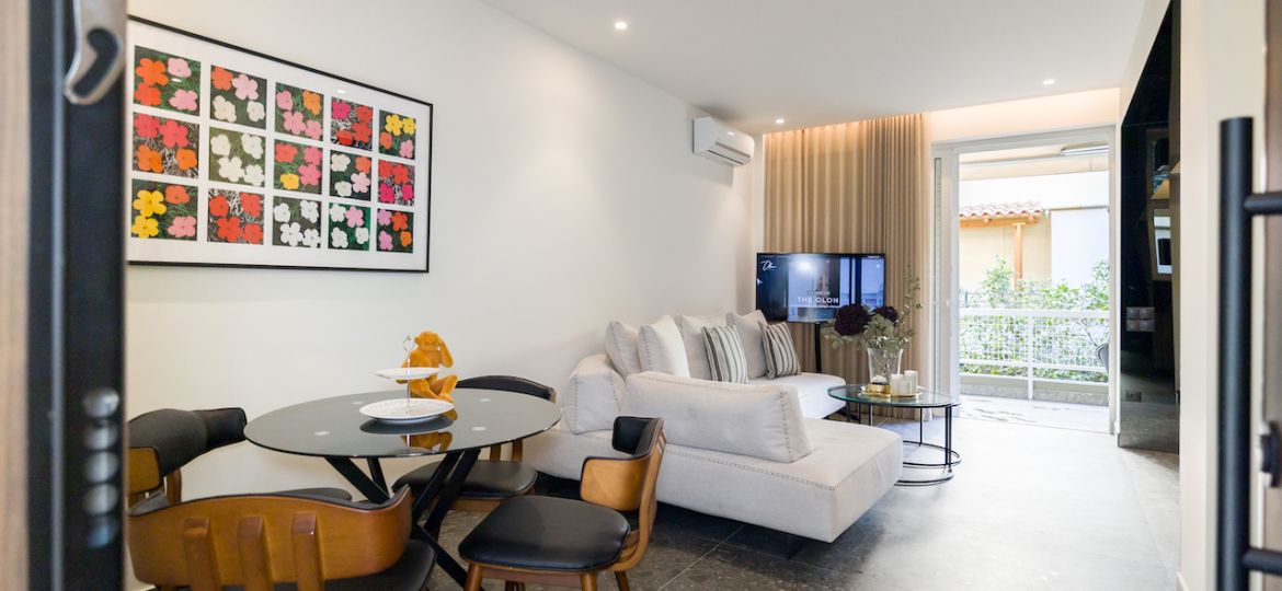 A stunning, 55 m² 1st floor luxury apartment located in the heart of the upscale Athenian coastal suburb of Vouliagmeni. Renovated in 2021 | 1 Bedroom | 1 Bathroom | 2 TVs: 55” Smart 4K TV with Netflix & 35” TV | Very fast Internet | Super location within 100m from Kavouri sandy beach | Balcony with a swing | Bus stop near by!