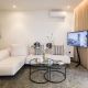 Living room: dining table for 4, Air conditioning, comfortable sofa with a huge 55’’ 4KTV with Netflix and direct access to the balcony. In the same are a modern kitchen is equipped with everything needed for preparing any kind of home meals.