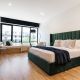 Meticulously designed to maximize space and light, the suite boasts elegant design features and bespoke fittings. The wooden flooring and furniture contrast beautifully with the black and emerald-green colour scheme that permeates the space.